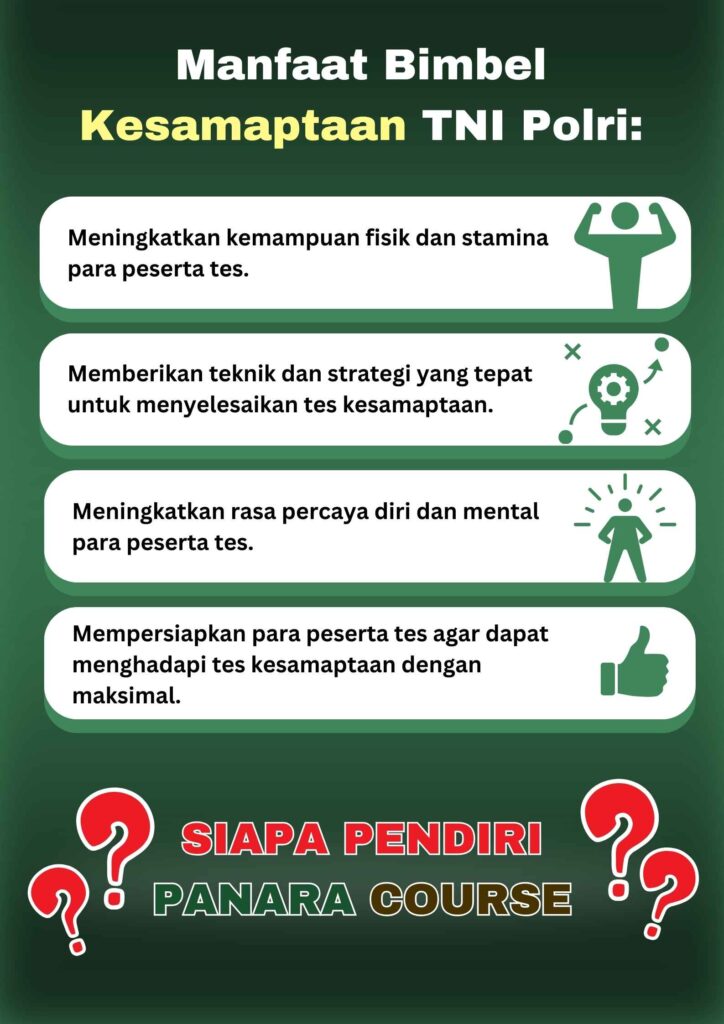 - Memberikan teknik dan strategi: Mempelajari teknik dan strategi untuk menyelesaikan tes kesamaptaan dengan optimal.