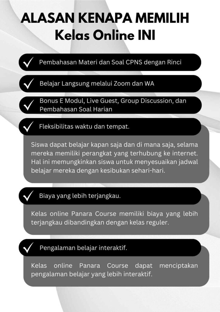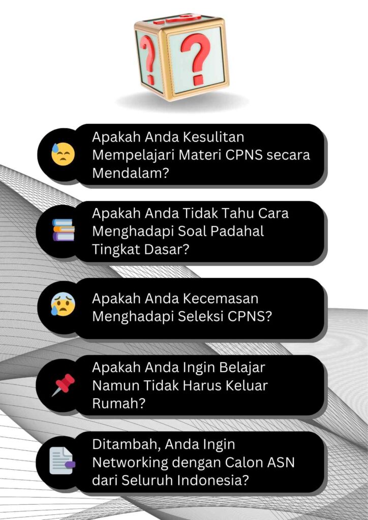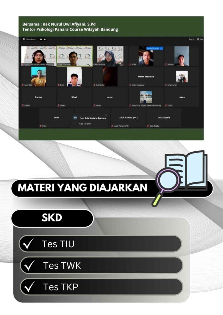 Materi yang diajarkan bisa mencakup SKD yang diujikan dalam Tes Seleksi CPNS.
