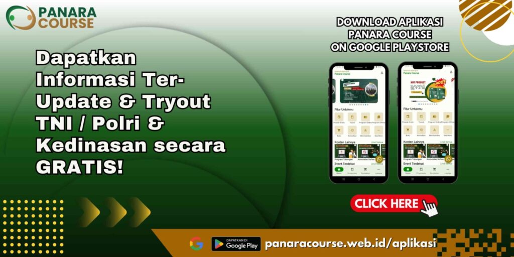 Program yang dibuat oleh Panara Course yang akan mempermudah para casis dalam mengakses berbagai program bimbingan belajar terbaik untuk persiapan tes TNI, Polri, dan Kedinasan dengan mudah dan cepat .Â