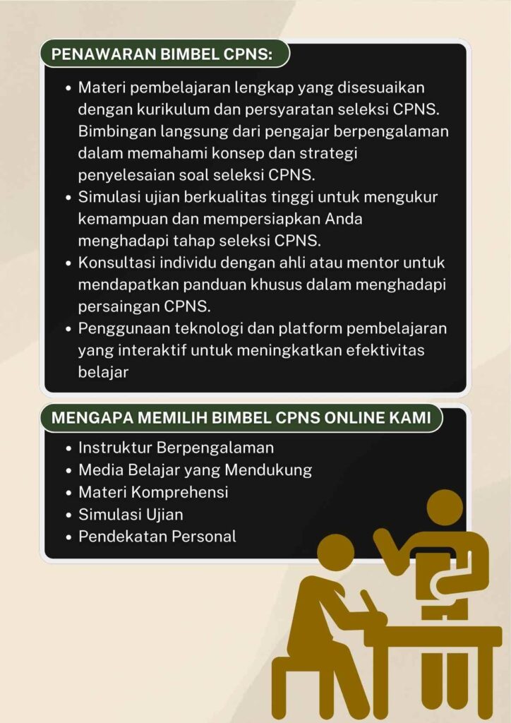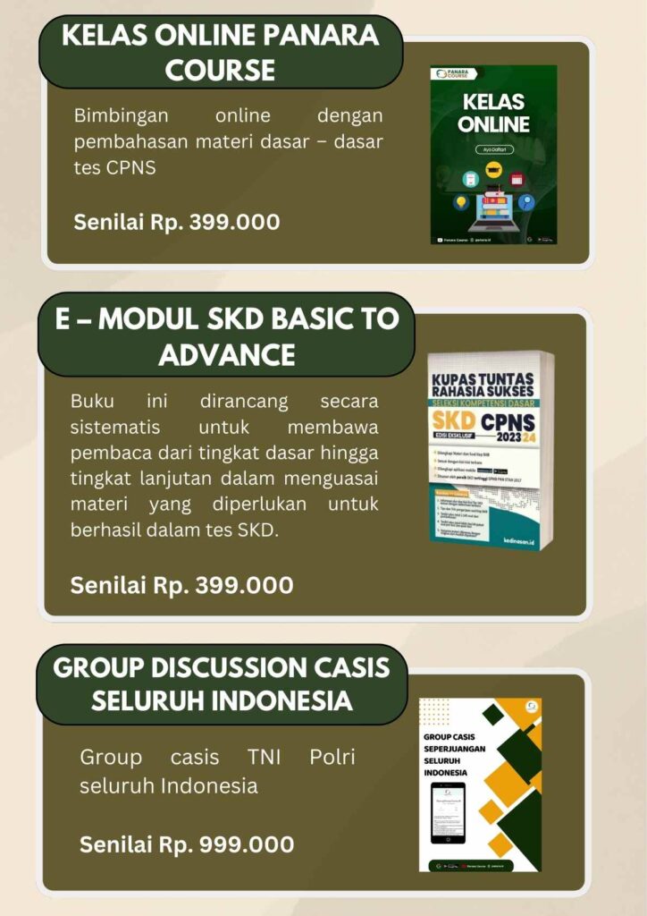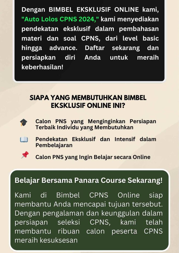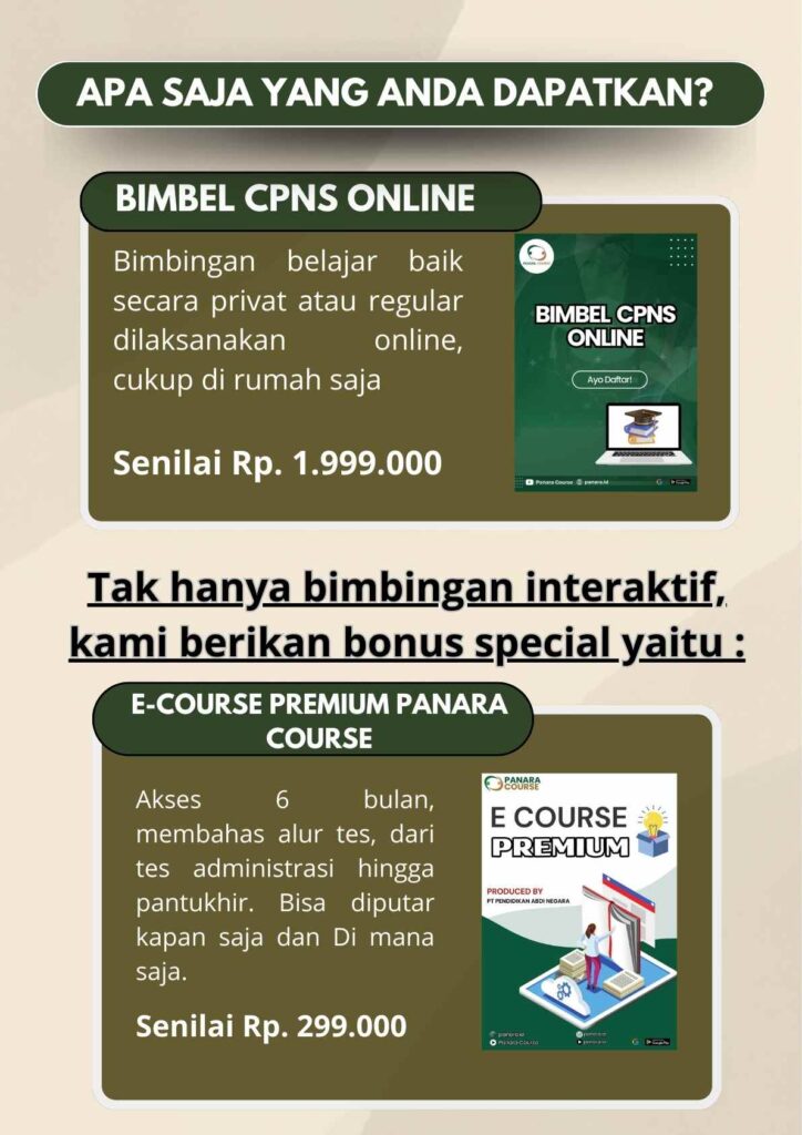 Kami tidak ingin bilang ini cocok untuk kalian. Akan tetapi, jika kalian sedang dalam situasi dimana kalian tidak memahami tentang soal tes, trik & tips atau info yang lain berhubungan dengan tes CPNS, maka Panara Course sangat cocok untuk kalian.