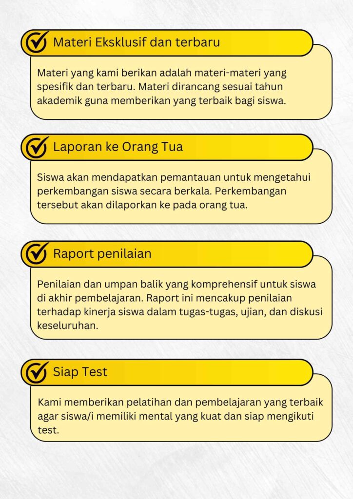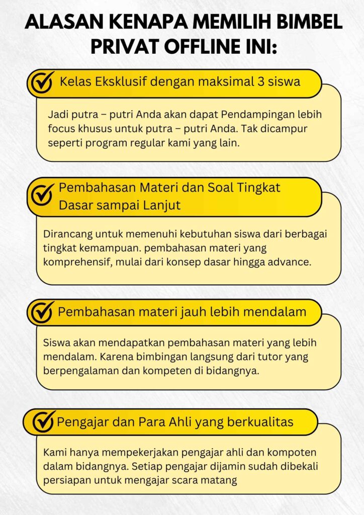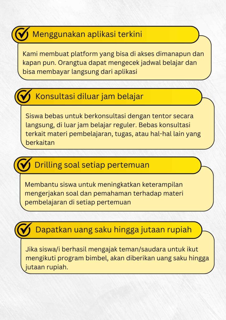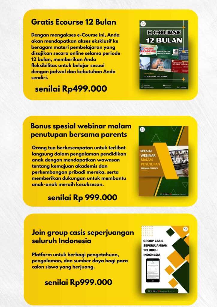 Ketika Anda memutuskan untuk mengambil paket belajar Bimbel Privat Offline, Anda akan otomatis mendapatkan bonus .