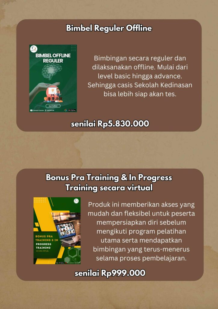 Dengan mengikuti bimbel reguler offline, Anda bisa mendapatkan paket belajar SKD dan Psikologi sekaligus. Tentunya paket belajar tersebut bisa Anda dapatkan dengan biaya lebih murah.